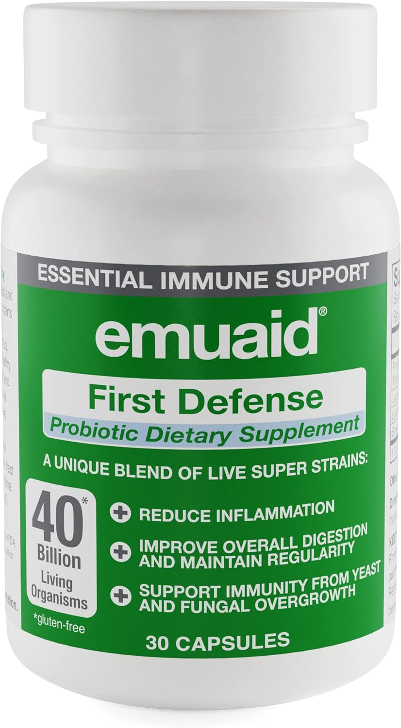 A6: EMUAID First Defense Probiotics contain 40 billion live probiotics that help balance the digestive system and boost immune health. Regular use can lead to improved digestion and enhanced overall well-being.