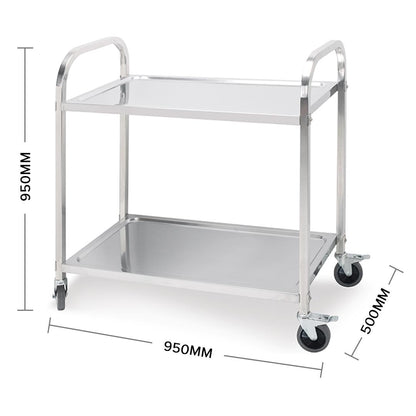 SOGA 2 Tier Stainless Steel Kitchen Dining Food Cart Trolley Utility Size 95x50x95cm Large