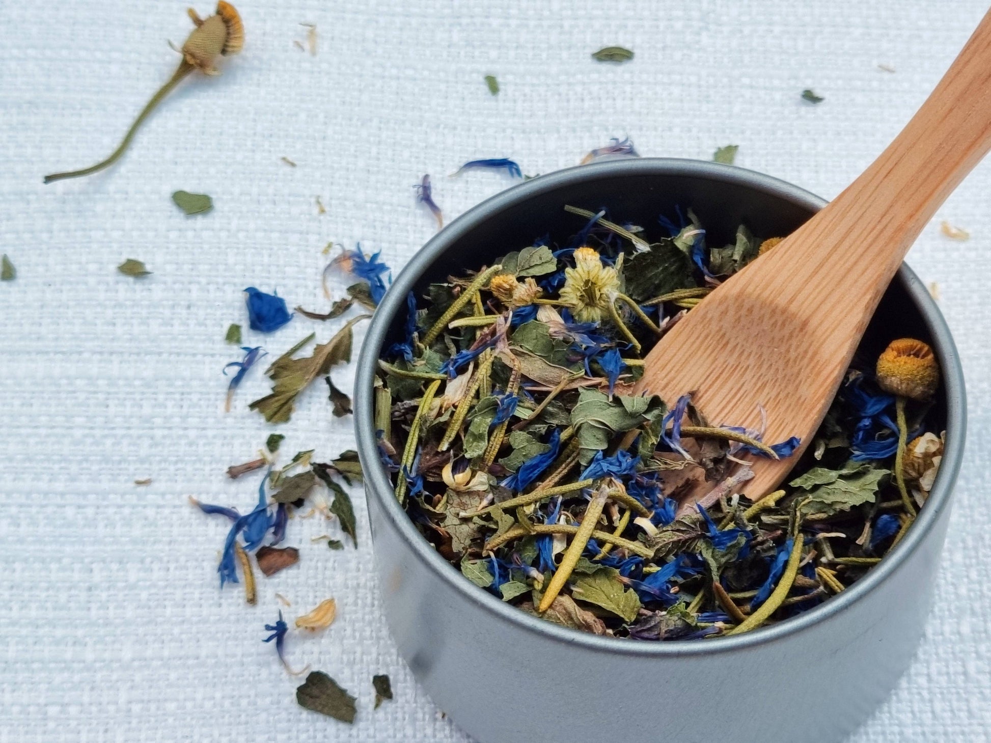 Organic Chamomile, Rose, Lavender, Calendula, Blue Cornflower, Jasmine