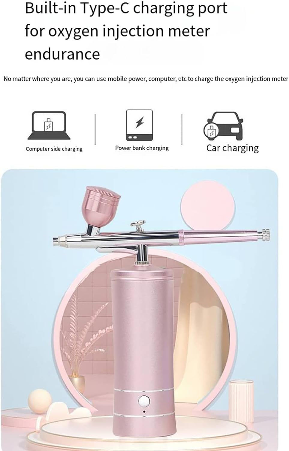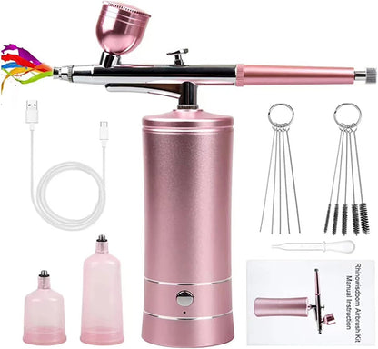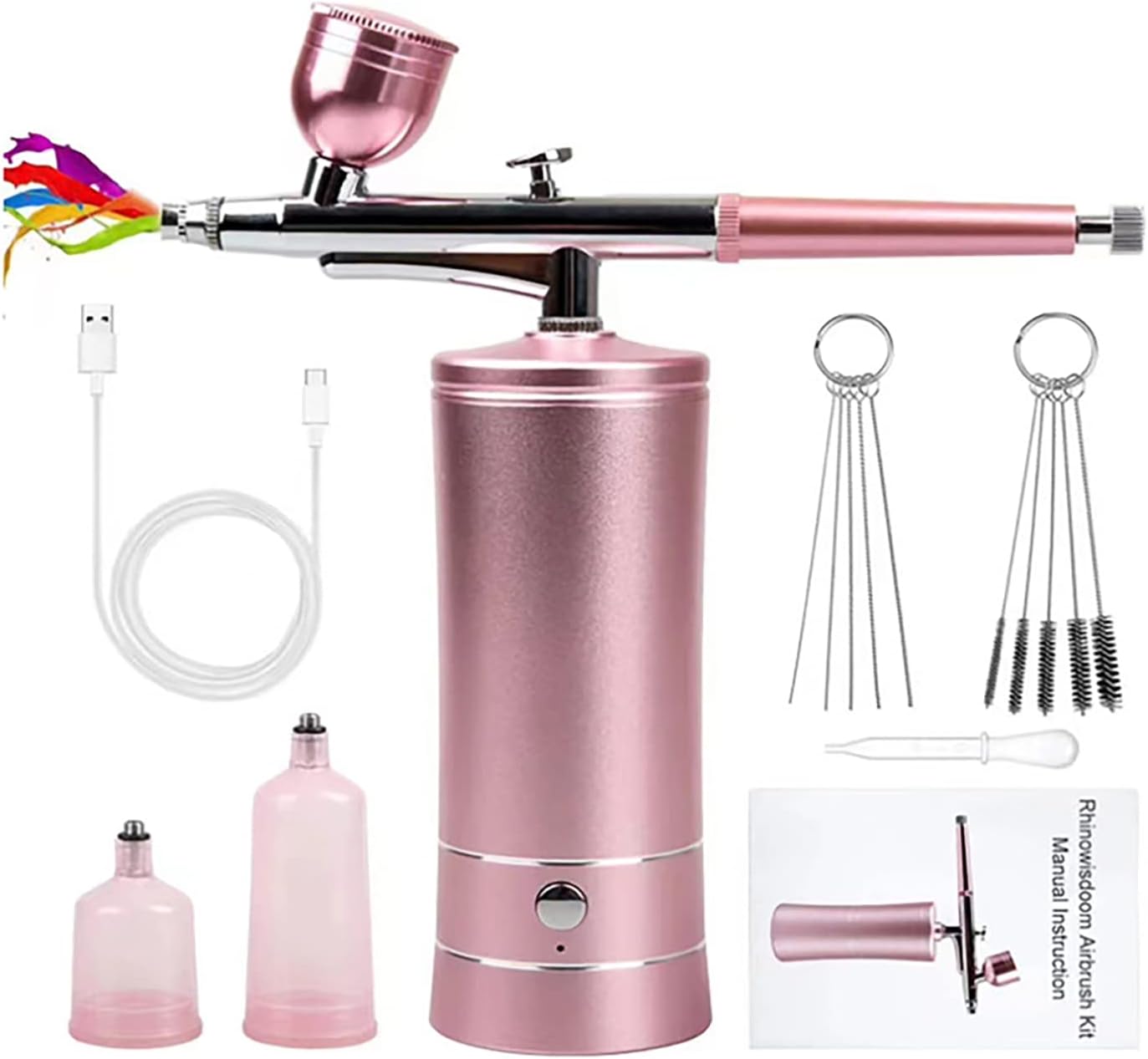 Airbrush kit, Cordless Handheld Rechargeable Airbrush Gun Compressor Spray Gravity Feed for Cake Decor, Model Painting, Makeup, Tattoo, Nail Art - Pink