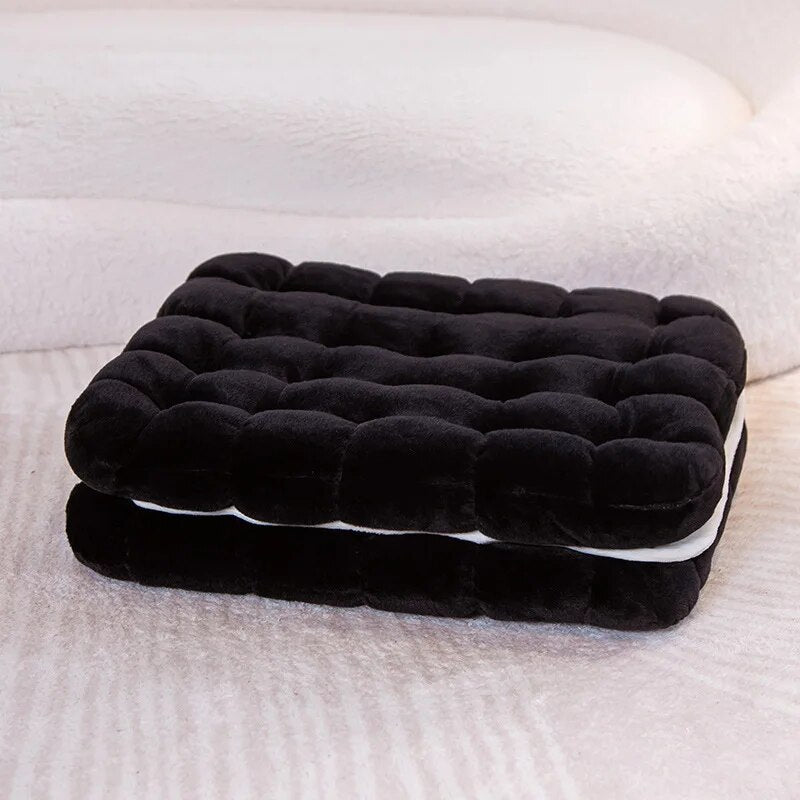 Anyhouz Plush Pillow Black Square Double Biscuit Shape Stuffed Soft Pillow Seat Cushion Room Decor