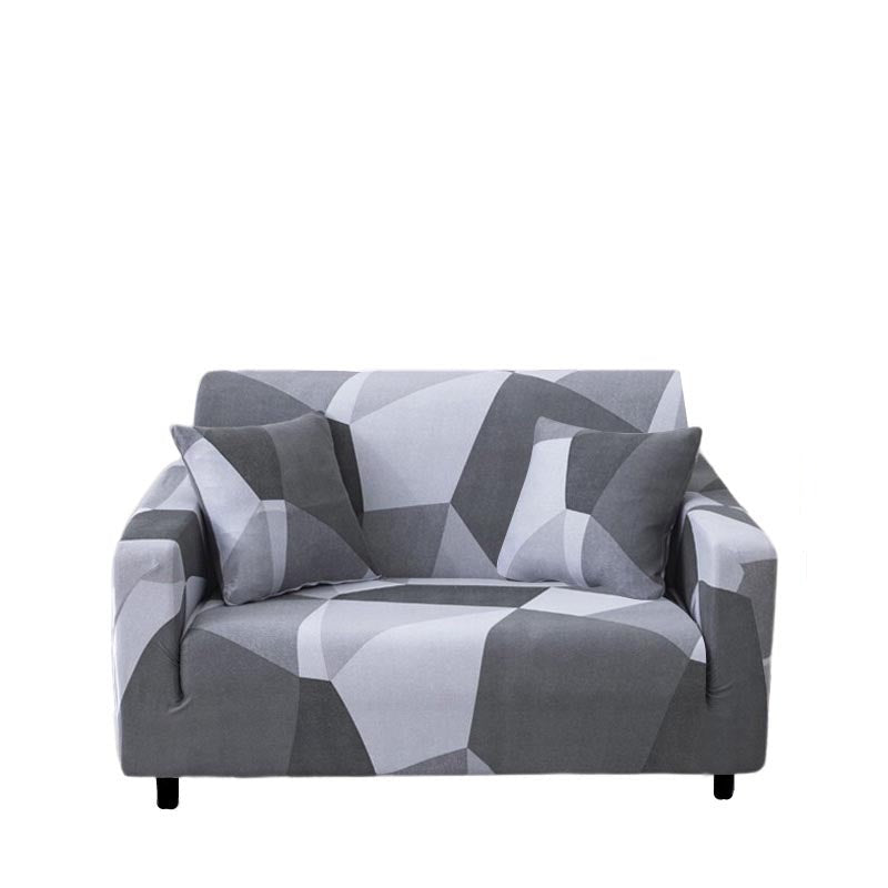 Anyhouz 2 Seater Sofa Cover White Gray Geometric Style and Protection For Living Room Sofa Chair Elastic Stretchable Slipcover
