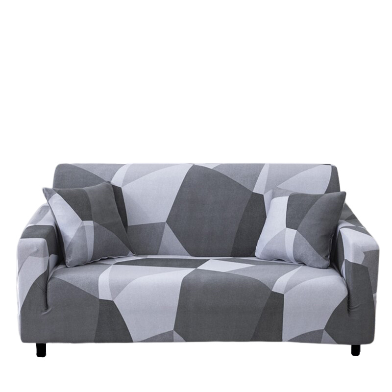 Anyhouz 4 Seater Sofa Cover White Gray Geometric Style and Protection For Living Room Sofa Chair Elastic Stretchable Slipcover