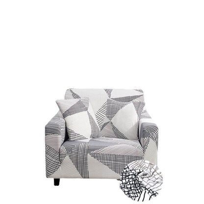 Anyhouz 1 Seater Sofa Cover White Geometric Style and Protection For Living Room Sofa Chair Elastic Stretchable Slipcover