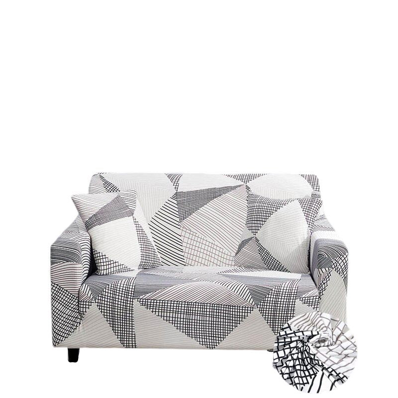 Anyhouz 2 Seater Sofa Cover White Geometric Style and Protection For Living Room Sofa Chair Elastic Stretchable Slipcover