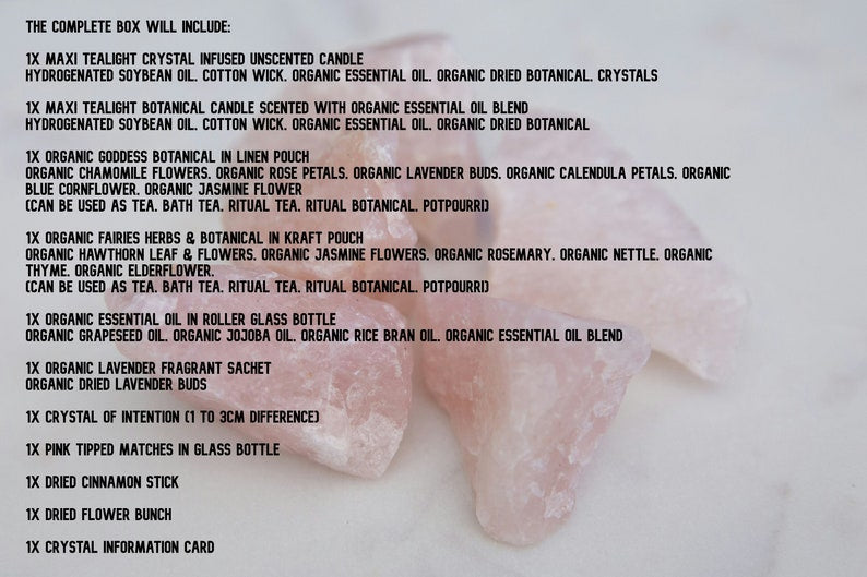 Includes specially chosen crystals known for their healing properties to enhance well-being.