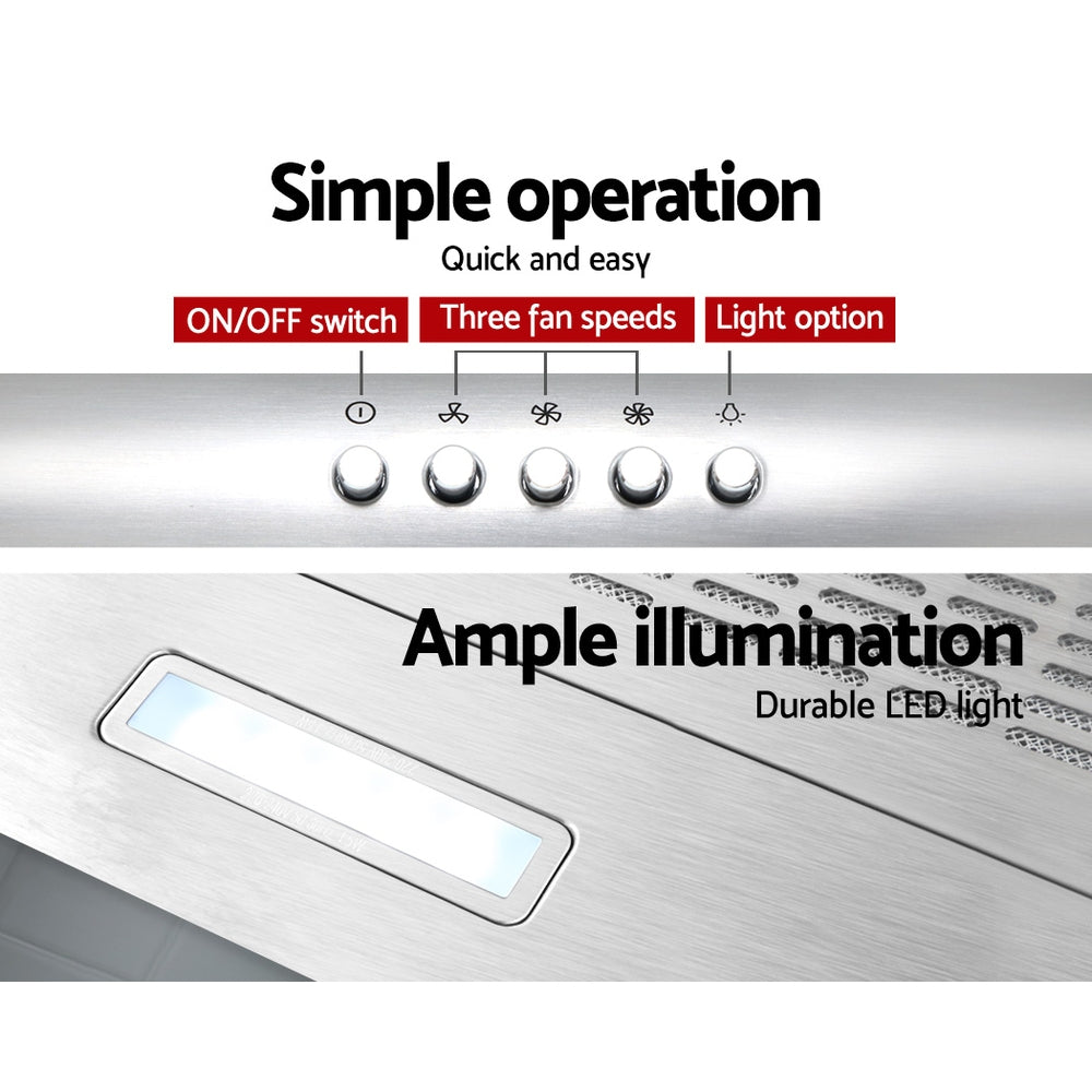 Frying, searing and grilling all the time? Want to maintain a clean and fresh-smelling ambience? Let our Devanti 60cm stainless steel range hood help keep unwelcomed cooking odours and smoky fumes at bay. The stainless steel kitchen canopy operates quietly and consumes less power. With its high performance motors, this range hood provides a steady upflow and filtered extraction of oil and fumes to keep your cooktop fresh and clean after every use. You can also adjust the extraction speed with its 3-speed touch controls to suit the circumstances. Other features include a non-stick 5-layer aluminium filter that is removable, ducted or recirculated model option and a bright LED lamp to facilitate your cooking illumination. Delay no more. Pick up our Devanti range hood stainless steel range hood and discover a much cleaner and healthier space for cooking today.