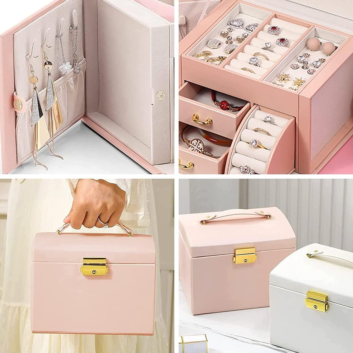 šŸ‘‘ć€CONSIDER THE DETAILS怑: the velvet lining can protect your jewelry from dust and scratches. The handle design on the top increases the portability of your jewelry box in daily use. The jewelry box can be locked to ensure the safety of your beloved jewelry accessories. In addition, the PU leather is laminated with lead-free glue during the production process, so the jewelry box is completely harmless to human health.