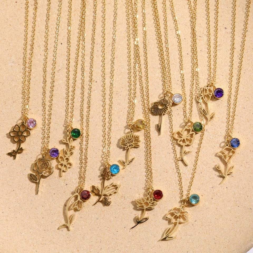 Birth Flower Necklace • Gold Birthstone Necklace • Custom Necklace • Custom Flower Necklace • Personalised Flower Necklace • Dainty