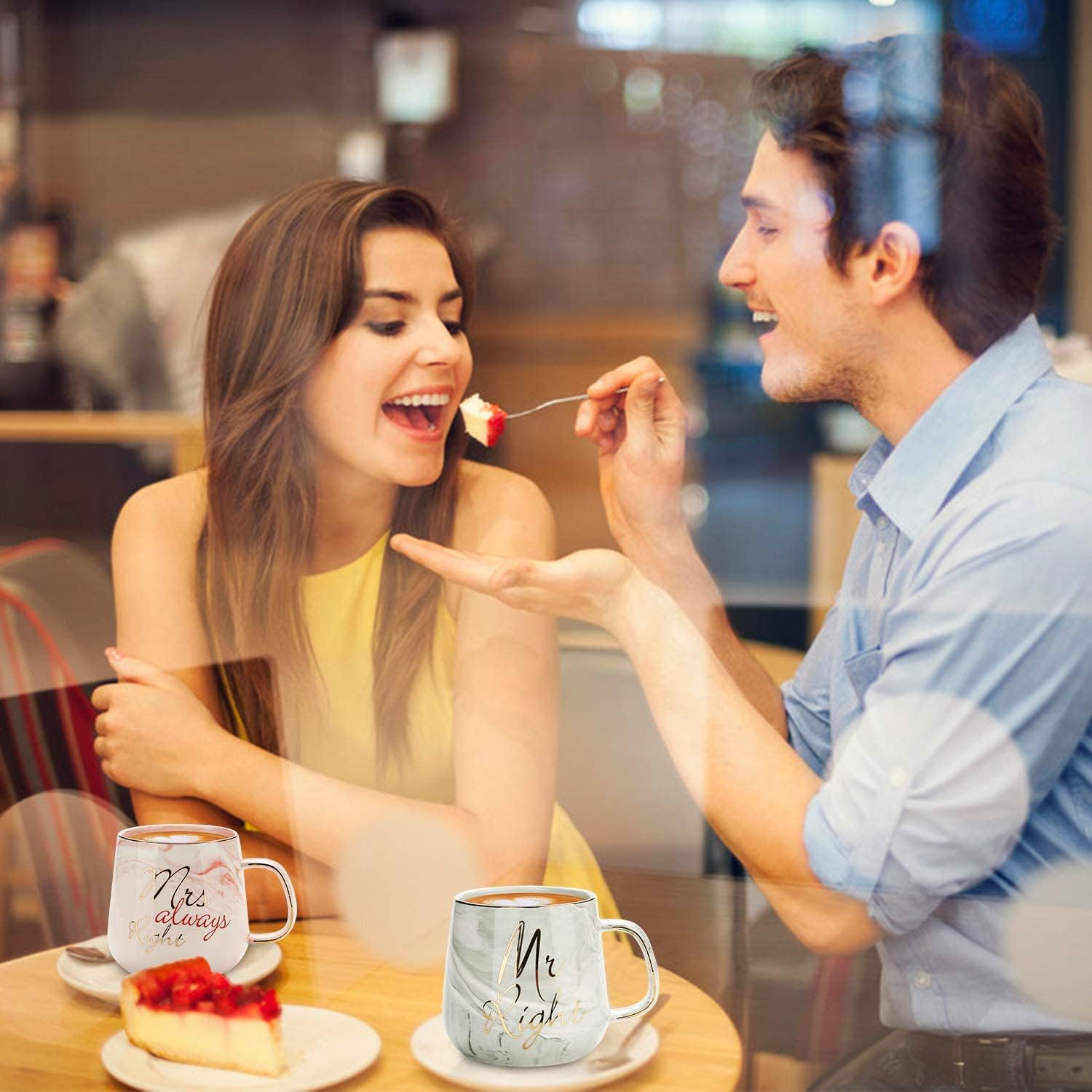 Mr Right and Mrs Always Right Couples Coffee Mugs Cups Gifts Set for Engagement Wedding Bridal Shower Bride and Groom to Be Newlyweds Anniversary