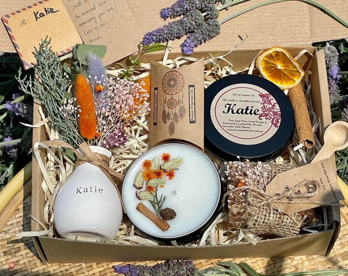 All the products are handmade by us using 100% organic and natural ingredients and organic wild flowers from our farm. We put our care and love in every single detail. We try to make someone feel special by personalizing their name on the products and make sure the box they receive is the one and only.