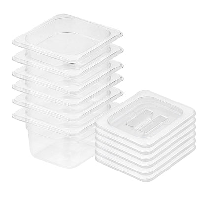SOGA 100mm Clear Gastronorm GN Pan 1/6 Food Tray Storage Bundle of 6 with Lid