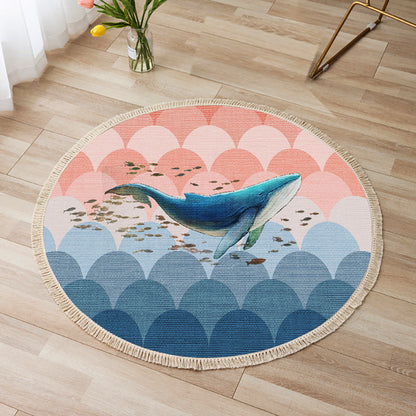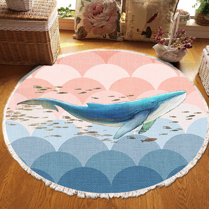 SOGA 120cm Round Tassels Whale Print Area Rugs Home Decor