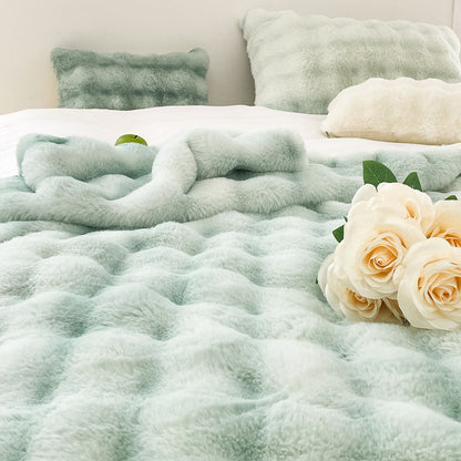 • Luxurious Softness: Crafted with plush fur, this blanket offers an indulgently soft and velvety texture, inviting you to wrap yourself in its cozy embrace.