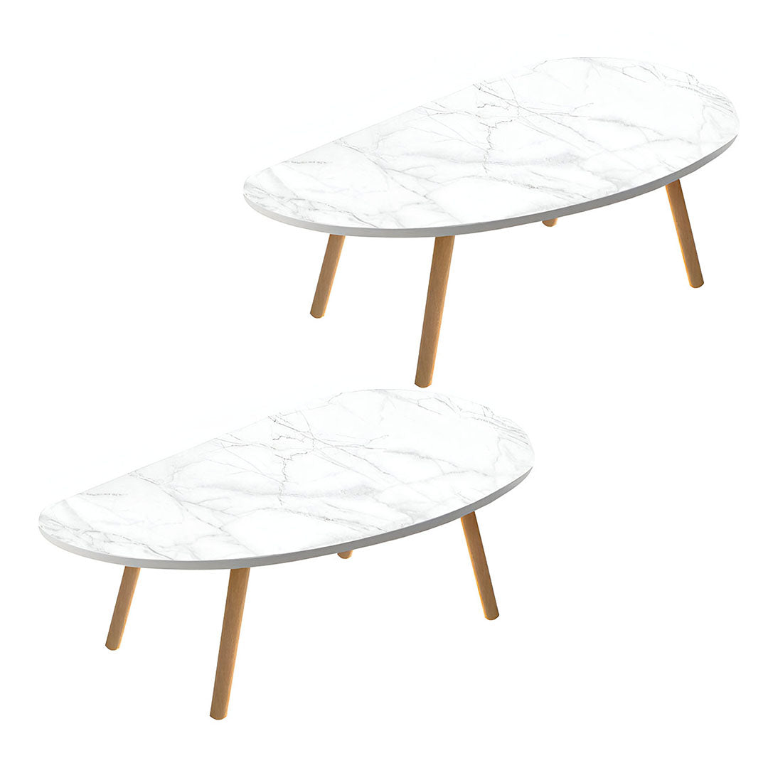 SOGA 2X 80x40cm White Stone Pattern Living Room Nordic Coffee Table Modern Style