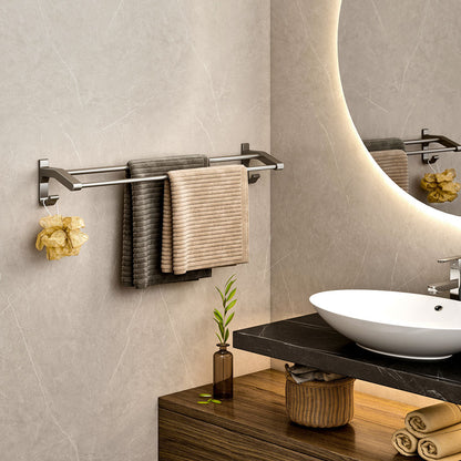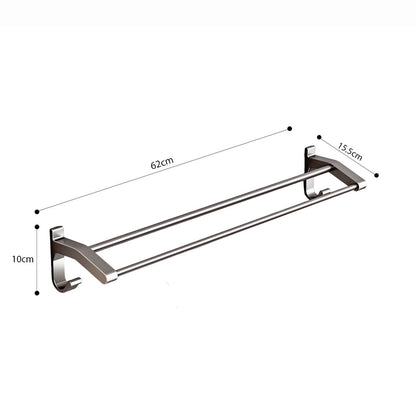 SOGA 62cm Gray Wall-Mounted Double Pole Towel Holder Bathroom Organiser Rail Hanger with Hooks