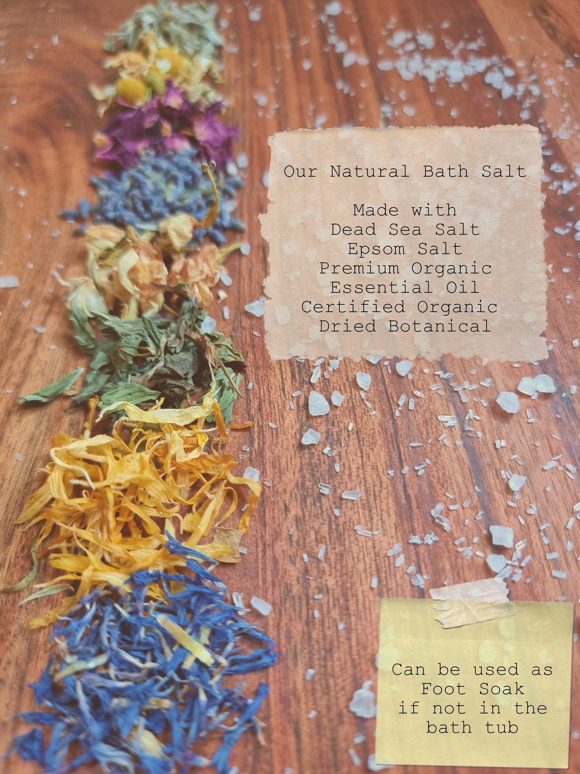 Epsom Salt, Dead Sea Salt, Organic Essential Oil, Organic Dried Botanical