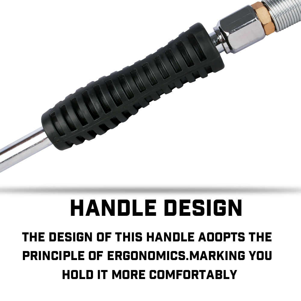 • The design of this handle embodying the principles of ergonomics,making your hand more comfortable, Heavy duty rubber hose protected by flexible spring steel